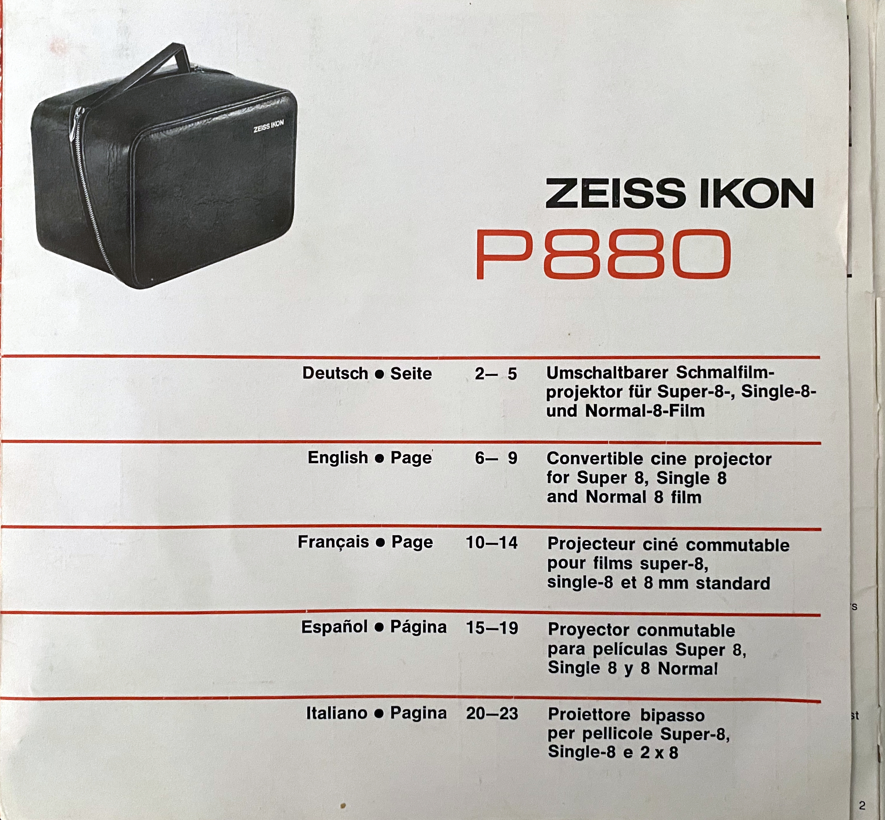 Bedienungsanleitung für ZEISS IKON P880, P 880 und baugleiche Geräte